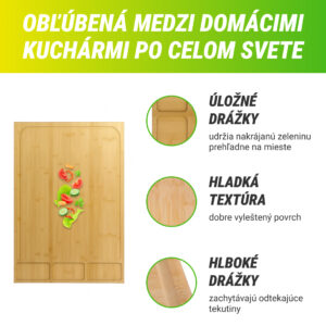 • Extra veľká plocha: S rozmermi 75 x 54 x 8.5cm, táto doska ti ponúka dostatok priestoru na prípravu veľkých jedál.
