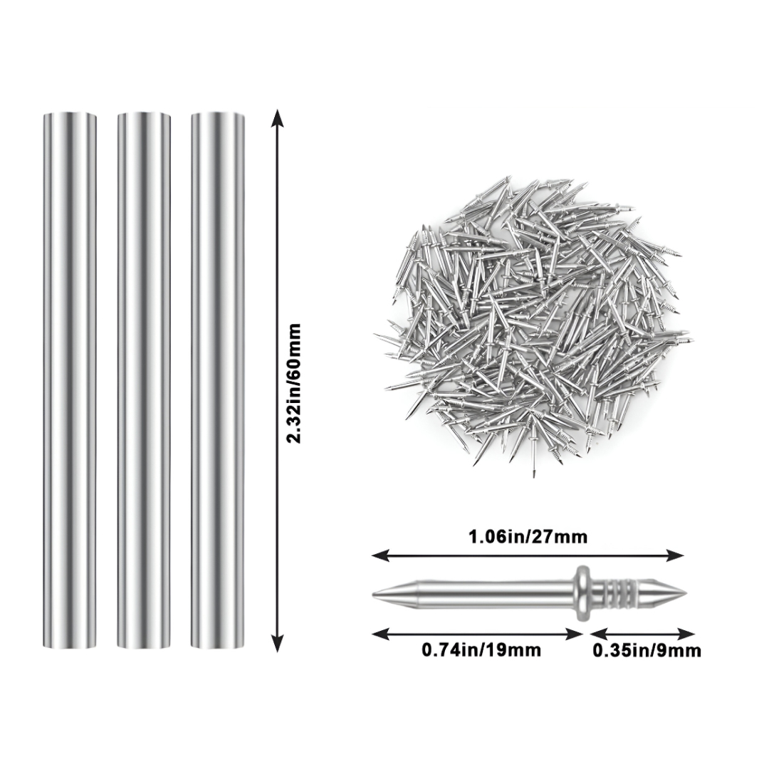 - Rozmery jednotlivého klinca: 2,8 × 0,25 × 0,25 cm