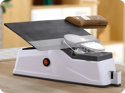 Presnosť bez námahy: Dosiahnite ostré čepele s minimálnym úsilím vďaka vstavaným uhlovým vodidlám brúsky a ovládaniu jedným tlačidlom. To zaisťuje vždy konzistentnú hranu profesionálnej kvality, čo zjednodušuje proces ostrenia.