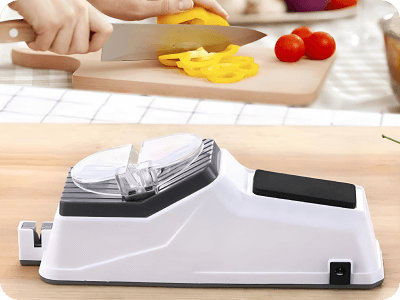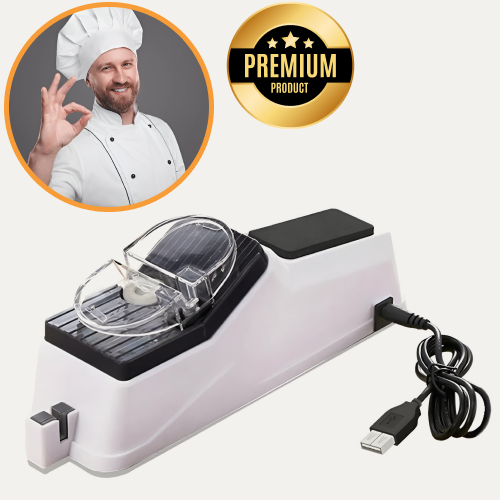 „Elektrická brúska na nože Razorknife™ mení hru! Moje nože nikdy neboli ostrejšie a dosiahnutie profesionálnych výsledkov trvá len niekoľko sekúnd. Vrelo odporúčam každému, kto miluje varenie.”